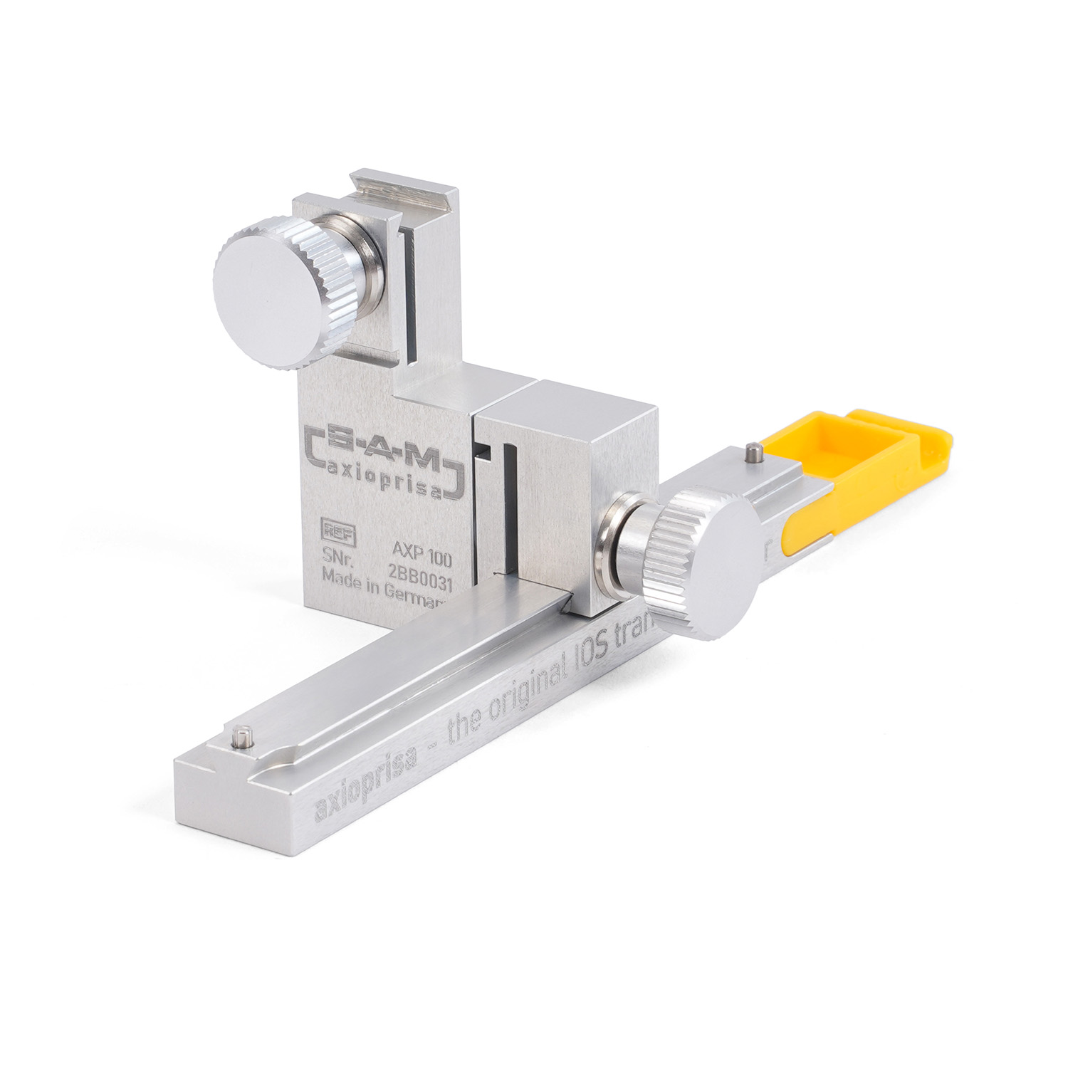 Сборка переноса Axioprisa прикреплена к переносной дуге SAM обычным способом. Благодаря комбинации Axioprisa и переносной дуги можно сканировать верхнюю челюсть в правильном анатомическом положении. Франкфуртская горизонталь — это плоскость, используемая всеми артикуляторами SAM. Используя этот путь, можно переносить положение челюсти с дополнительным сканированием во время внутриротового сканирования. Путь к простым процессам в стоматологической практике позволяет свести источники ошибок к минимуму.