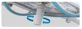 Вращающаяся ручка для выбора светового пятна. Легкость в обращении. Безопасный автоклавируемый материал.
