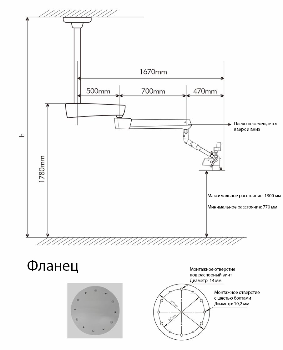 7. Кронштейн: Двойной кронштейн с регулировкой угла наклона.