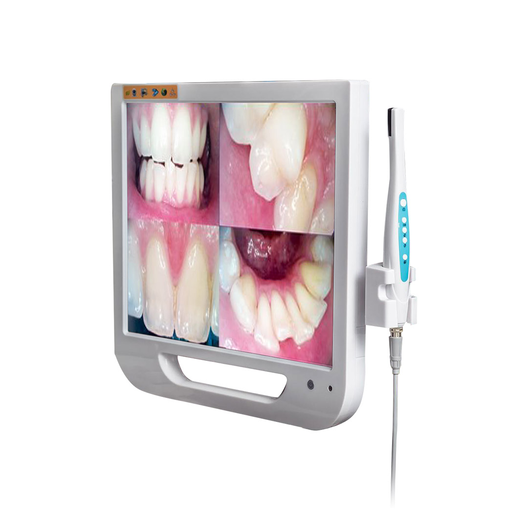 В комплект входит: интраоральная камера, монитор (17 дюймов, 1280×1024 Пикс.), держатель для монитора, USB-флеш-накопитель на 8 ГБ