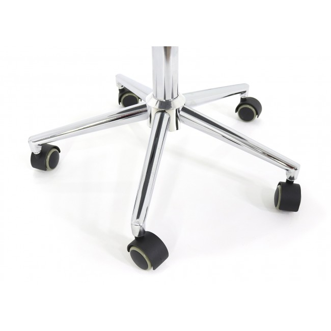 Модель можно регулировать по высоте в зависимости от проводимой процедуры. Делать это можно с помощью гидравлического подъемника. Рама стула выполнена из прочной стали. Этот материал не подвержен деформации даже в случае интенсивных ежедневных нагрузок. Кроме того, стальной каркас устойчив к появлению коррозии, влиянию влаги или мелких механических повреждений. Собственный вес конструкции составляет всего 10.2 килограмма, а выдерживать она может нагрузку до 100 килограмм.