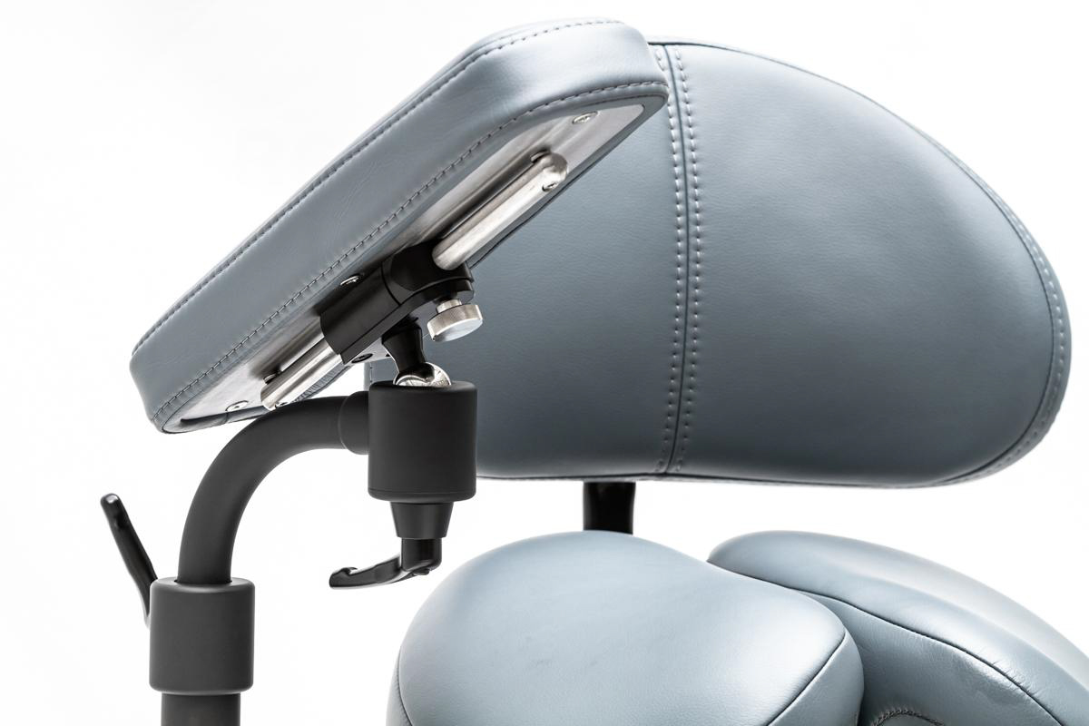 Подлокотники стула имеют очень широкий диапазон регулировки, что позволяет работать с микроскопом с максимальным комфортом. Функция трёхмерной регулировки позволит выставить необходимое положение подлокотников по высоте, горизонтали, а также по кругу. Также подлокотники могут выезжать вперёд.