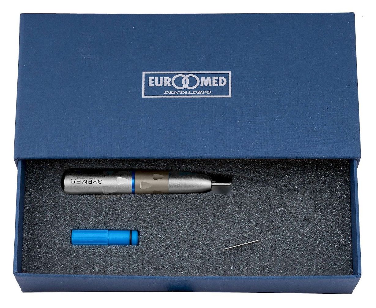 Наконечник имеет трансмиссию 1:1 и обеспечивает скорость вращения до 40 000 об/мин. Рабочие инструменты фиксируются цанговым зажимом. Частота вращения мотора равна частоте вращения рабочего инструмента (промаркирован синей круговой полоской на рукоятке)Характеристики наконечника:
