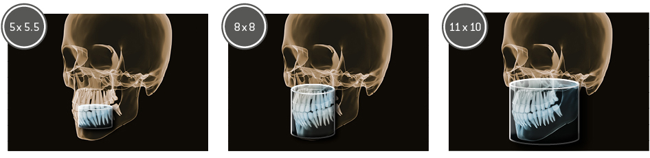 Планирование одиночной реставрации, эндодонтические исследования и пр. – для этого специалист может выбрать объёмные варианты 8 х 8 см или 11 х 10 см, также предлагается объём 5 х 5,5 см. Снимки в HD-качестве, стандартные настройки или выбор объёма обследования в зависимости от диагноза — всё это врач получает в отличном качестве, а для пациента излучение в районе исследования минимально.