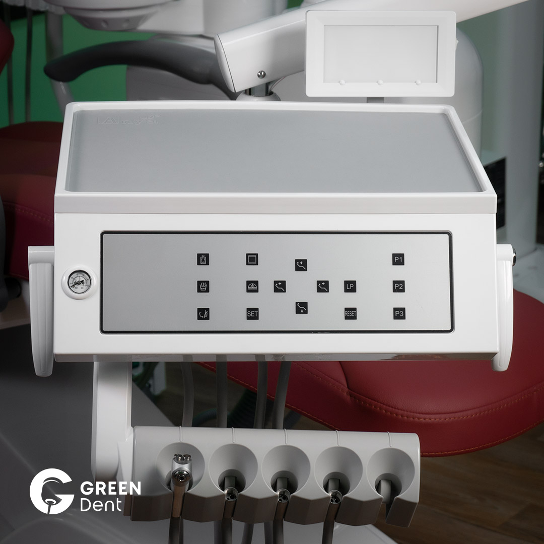 Блок врача на 5 инструментов с новой сенсорной панелью управления креслом и гидроблоком, манометром давления.