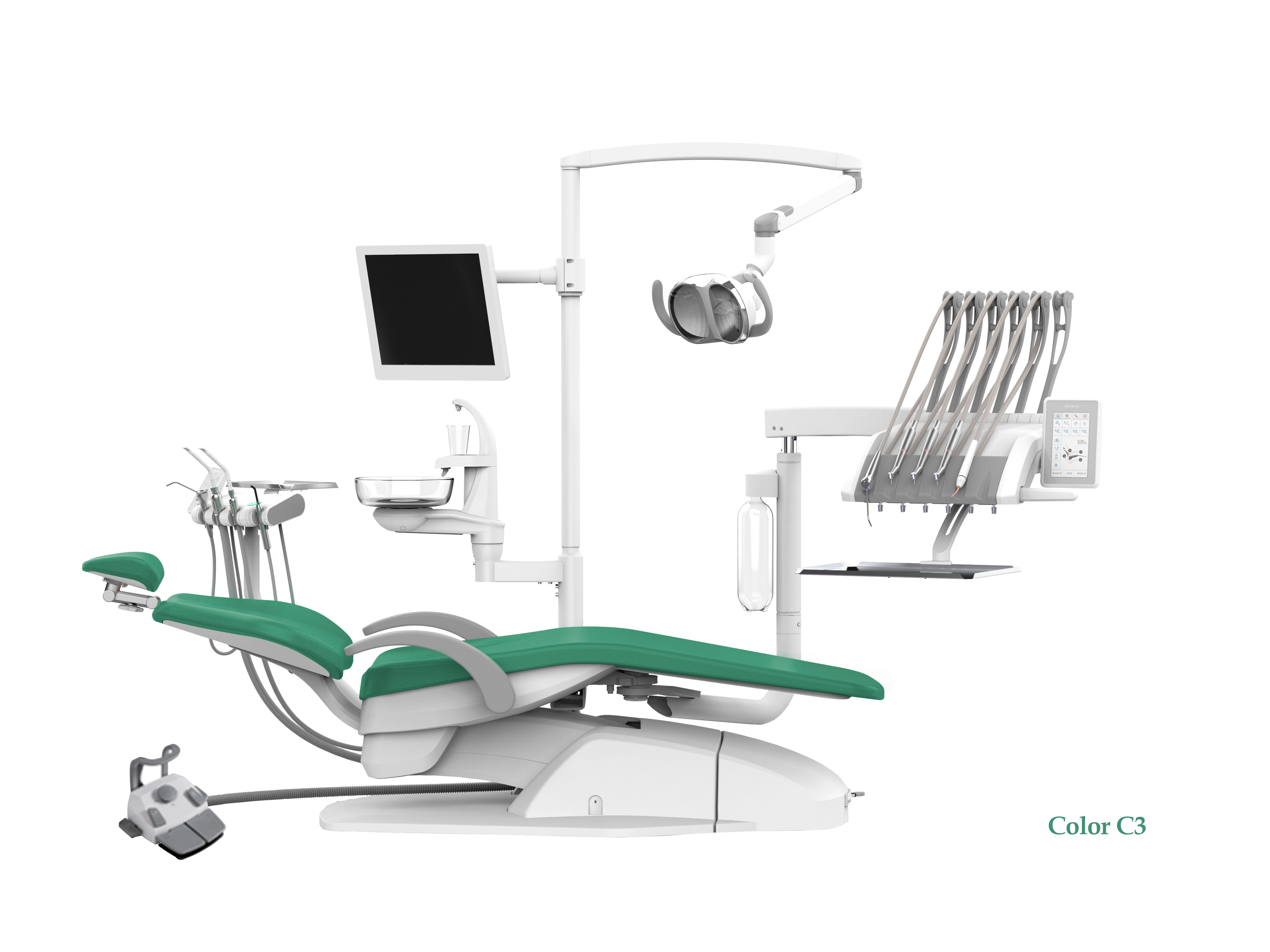 - Управление светильником осуществляется с помощью сенсорной панели на блоке врача, блоке ассистента и педали ножного управления