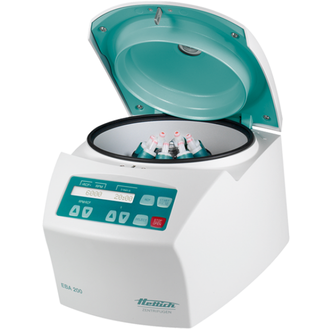 Модель Hettich EBA 200  - это практичная малая центрифуга для небольших объемов проб. В стандартной комплектации оснащена 8-местным угловым ротором для размещения пробирок объемом до 15 мл.