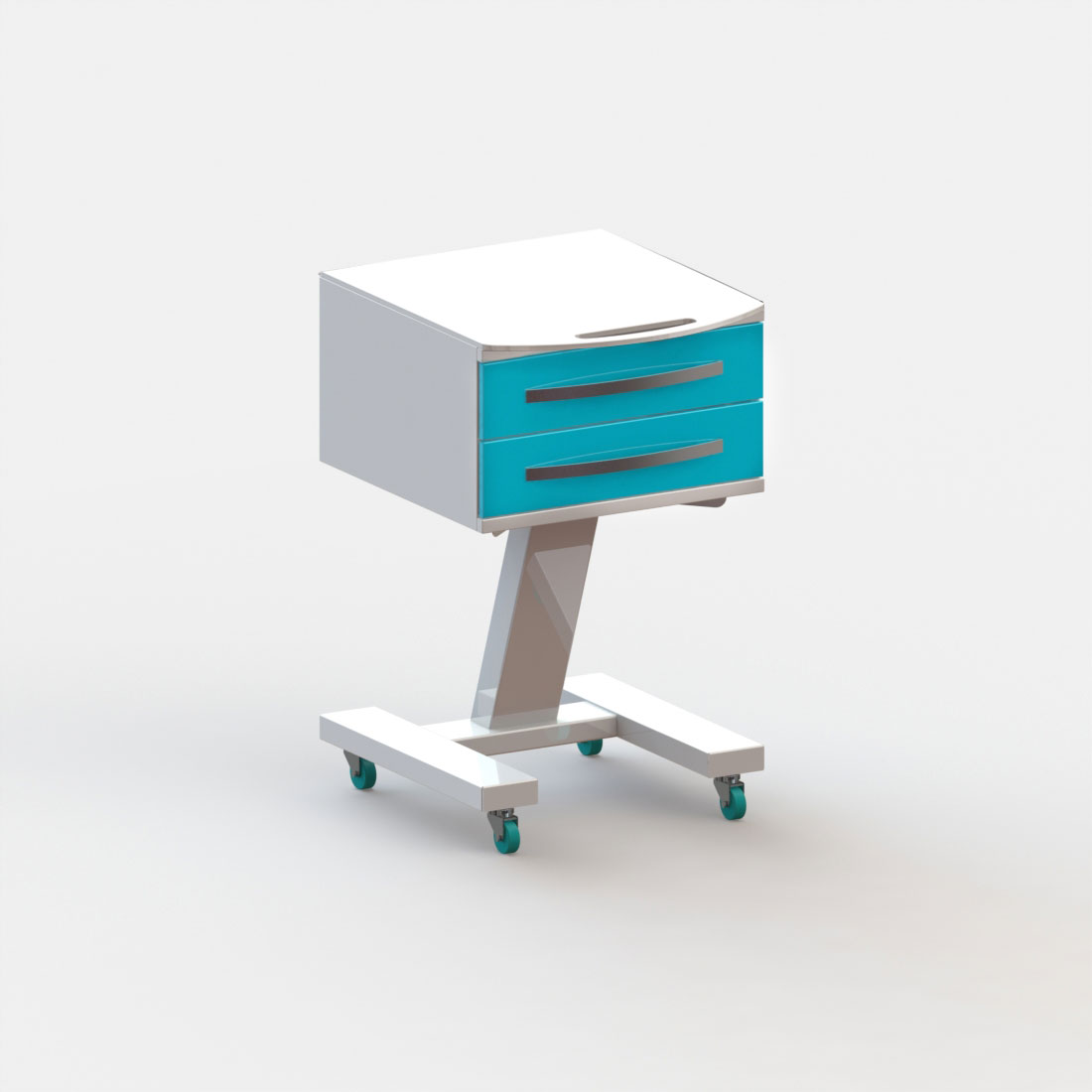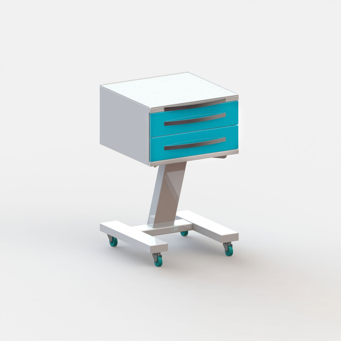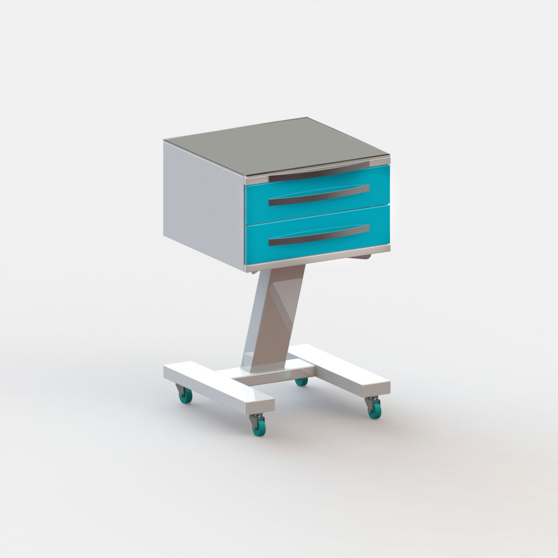 2 выдвижных ящика. Колёса 50 мм, 2 колеса с тормозом.
