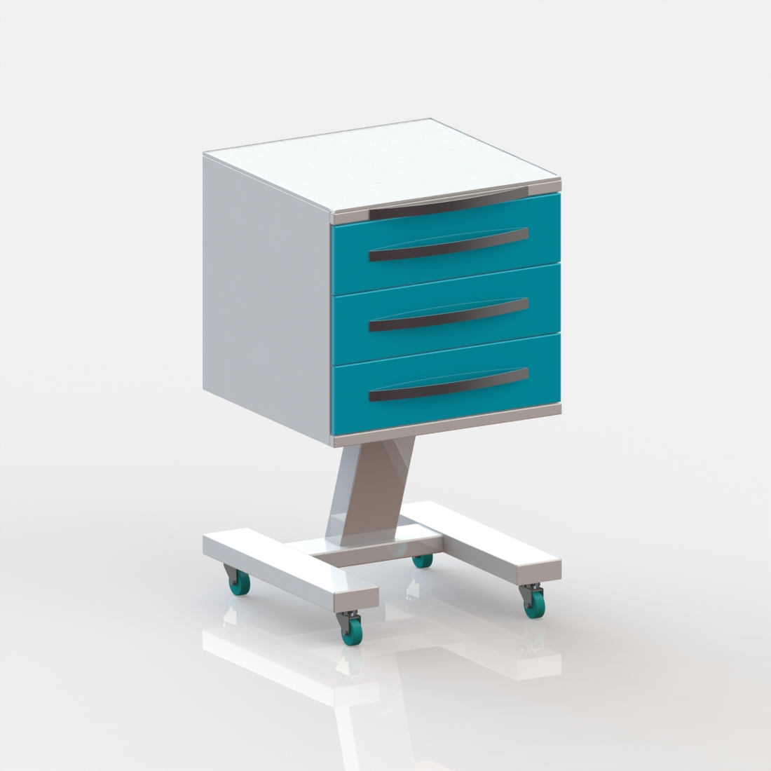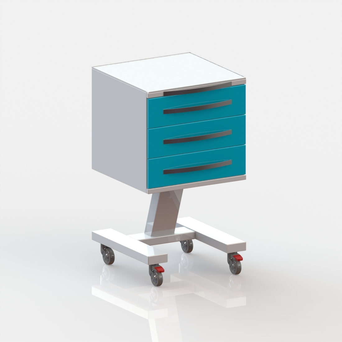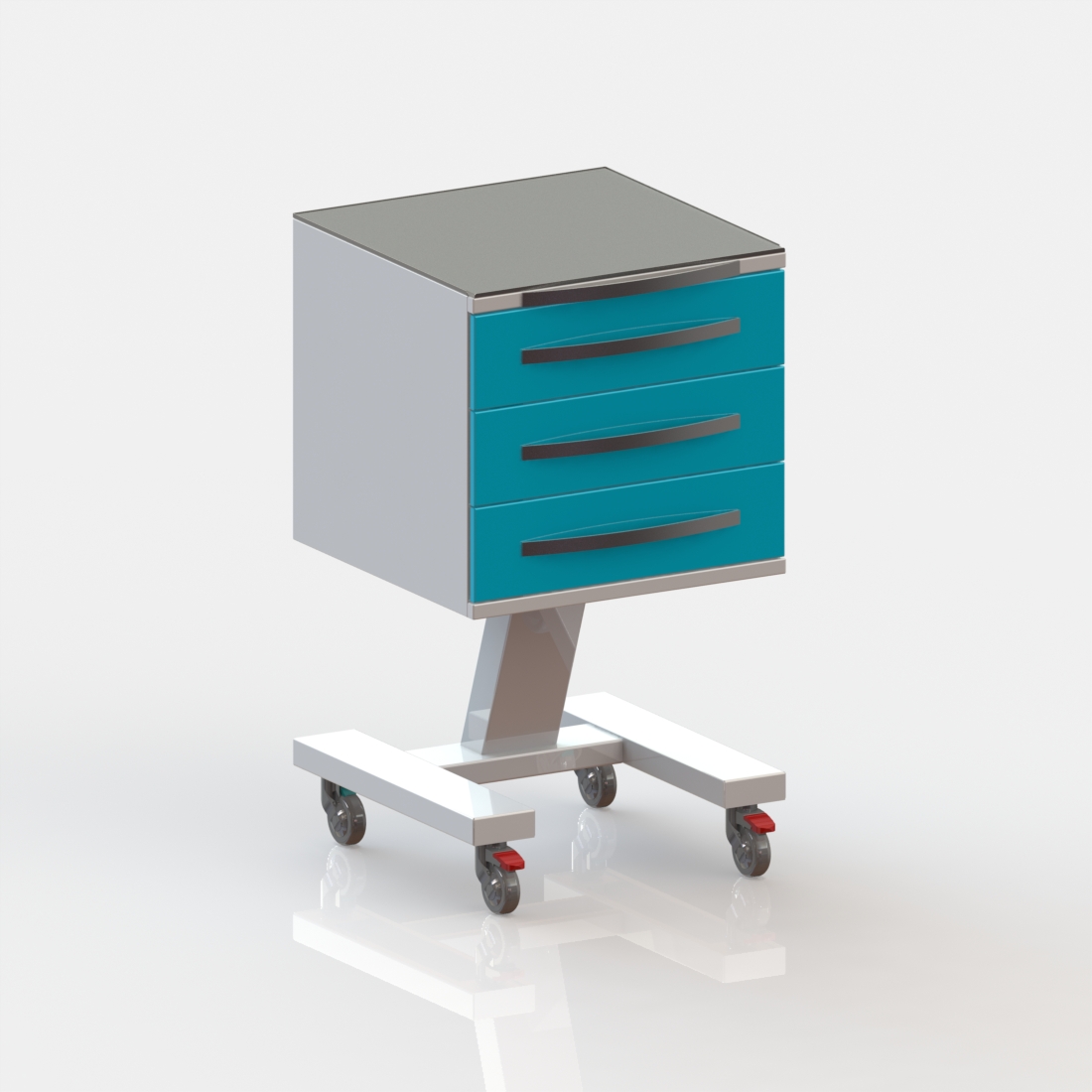 3 выдвижных ящика. Колёса 50 мм, 2 колеса с тормозом.