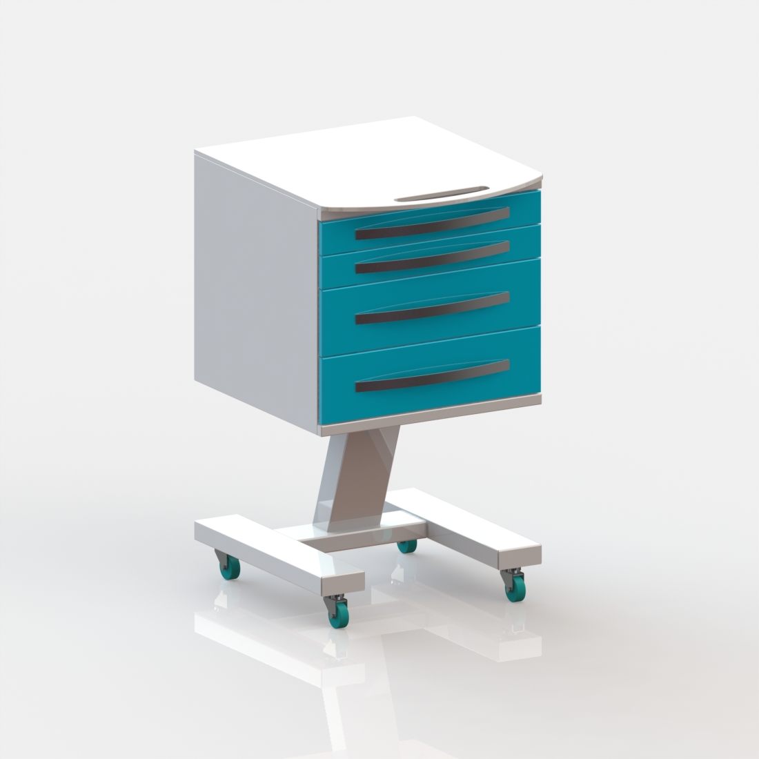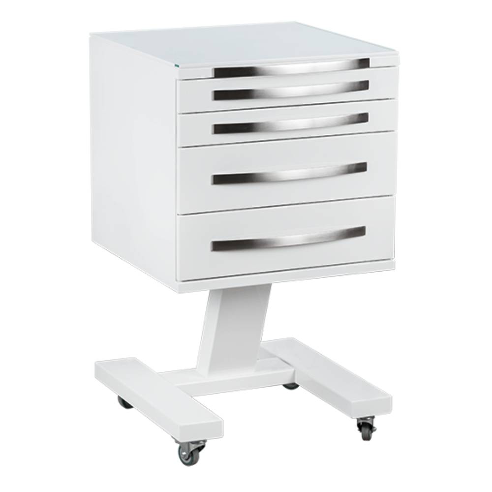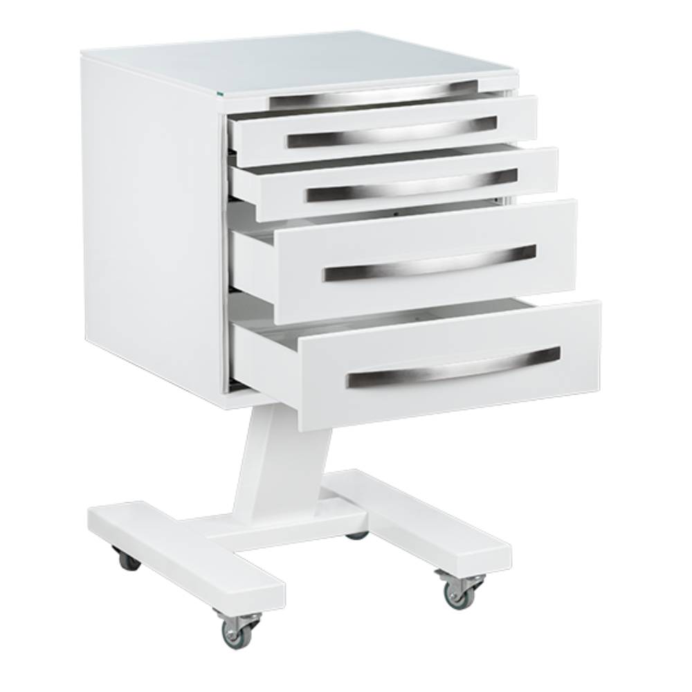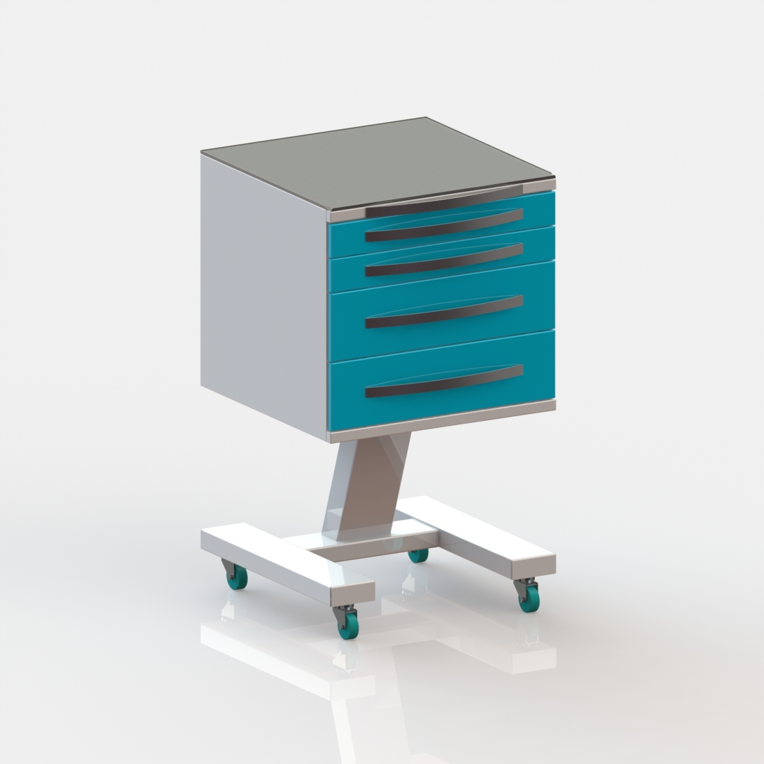 4 выдвижных ящика. Колёса 50 мм, 2 колеса с тормозом.