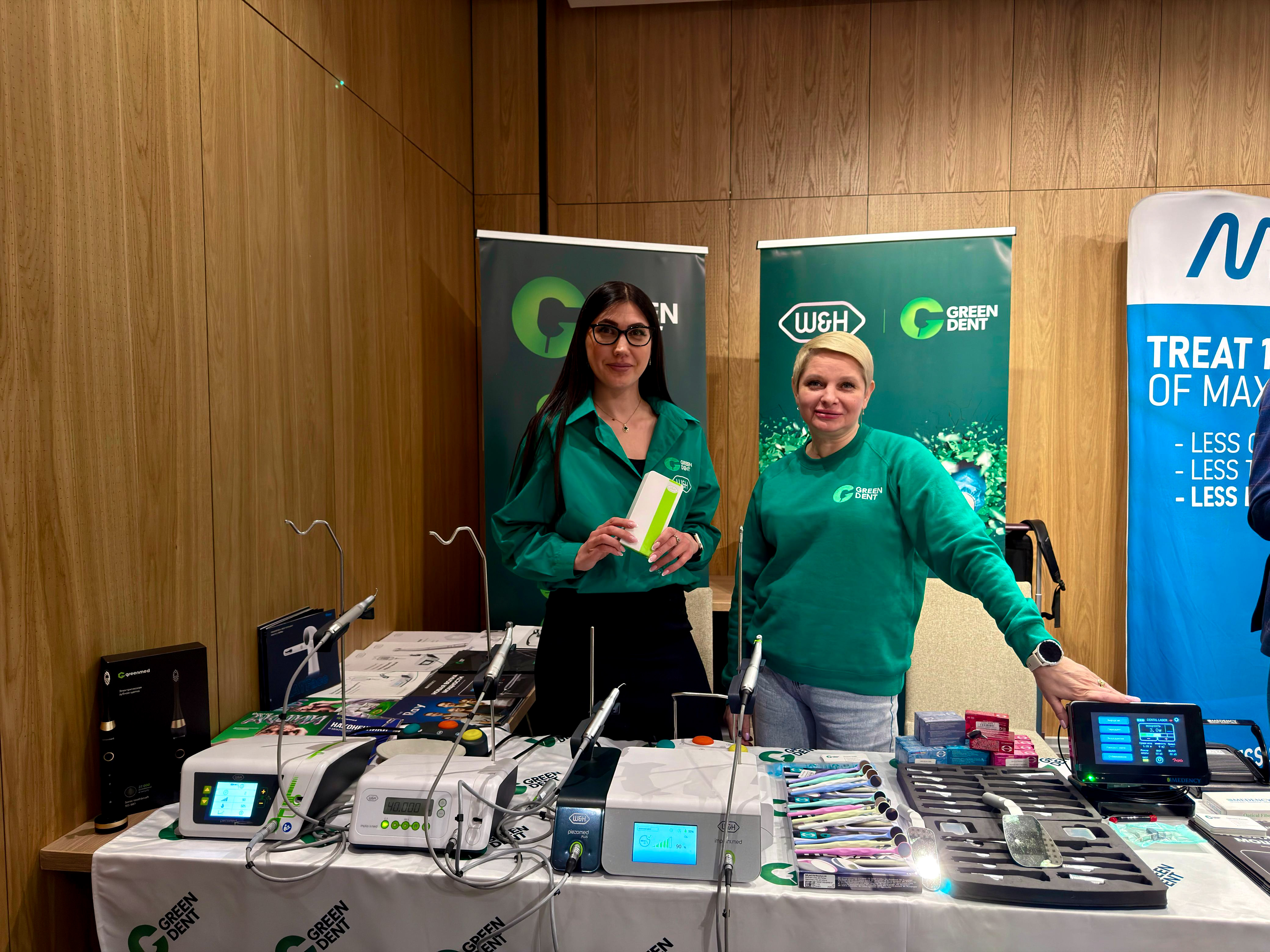 Его и многое другое инновационное стоматологическое оборудование на курс привезли специалисты компании GREEN DENT. Мы были рады встречи с каждым специалистом, спасибо за ваш интерес к нашей продукции, представленной на стенде: зеркала, бинокуляры, Piezomed, Implantmed, Piezomed plus и лазеры Medency.